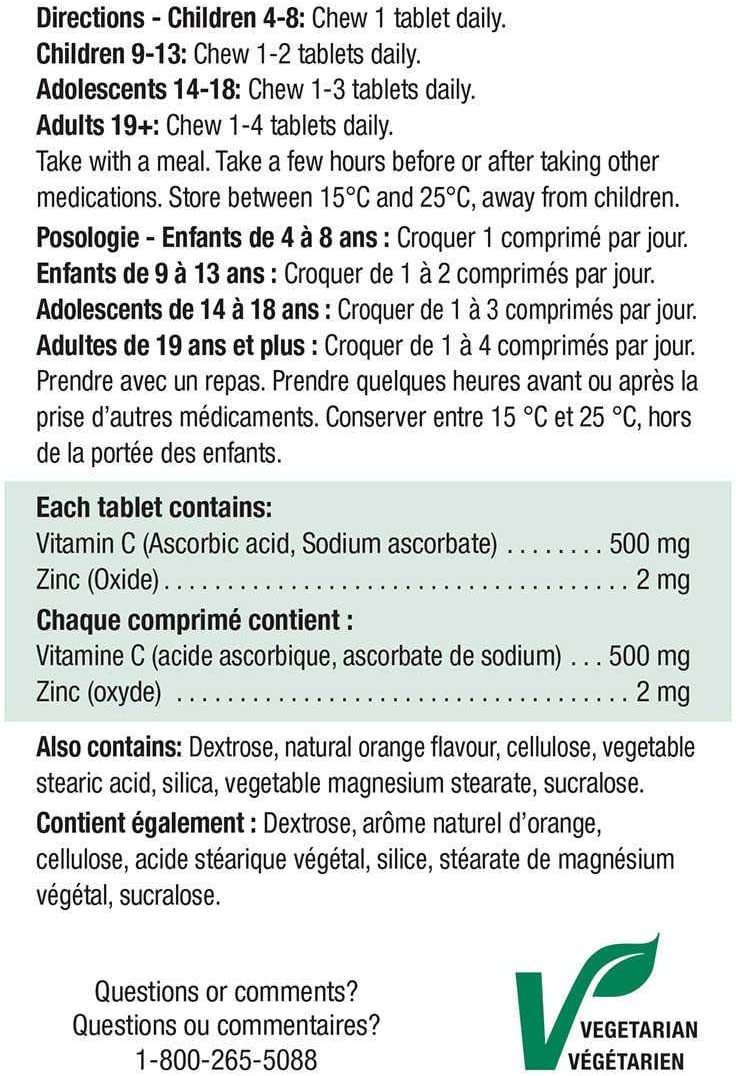 Tasty, chewable Vitamin C for health and vitality! Jamieson?s Vitamin C Orange Chewable Tablets provide 500 mg of the powerful antioxidant, Vitamin C; an essential nutrient that helps fight colds, strengthen the immune system and aid in the development and maintenance of bones, cartilage, teeth and gums.