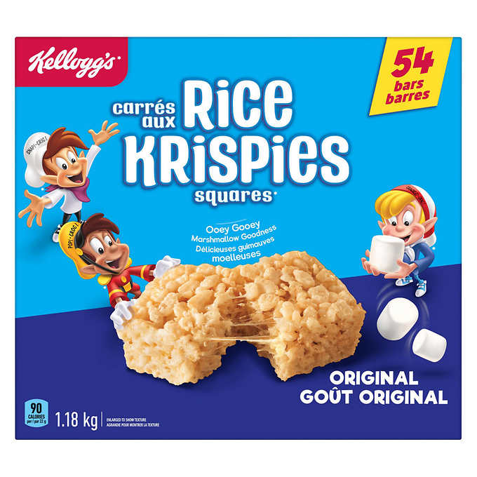 Kellogg’s Rice Krispies Square-Jumbo Pack, 54 Count Original his classic, delicious snack has been making memories for kids and adults alike for generations. Perfect for school lunches, afternoon snack, video gaming, parties, or anytime you want to show the little ones the love they deserve.