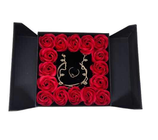 Create a lasting impression with this luxury bracelet, earring, and ring gift set presented in a beautifully designed rose-themed gift box. Adorned with 16 realistic artificial roses, the box delivers a romantic and elegant presentation that makes gifting effortless and memorable.