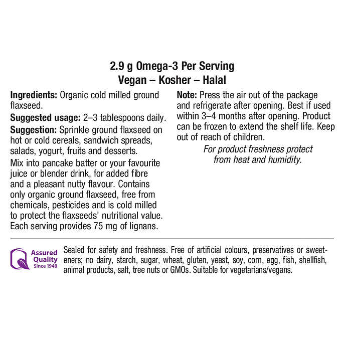 Webber Naturals Cold Milled Ground Flaxseed – Certified Organic -900g (Econo Pack)