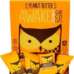 AWAKE Caffeinated Chocolate Bites, Peanut Butter Chocolate Energy Snack, 1 Bite Equals 1/2 Cup of Coffee, 50 Bites