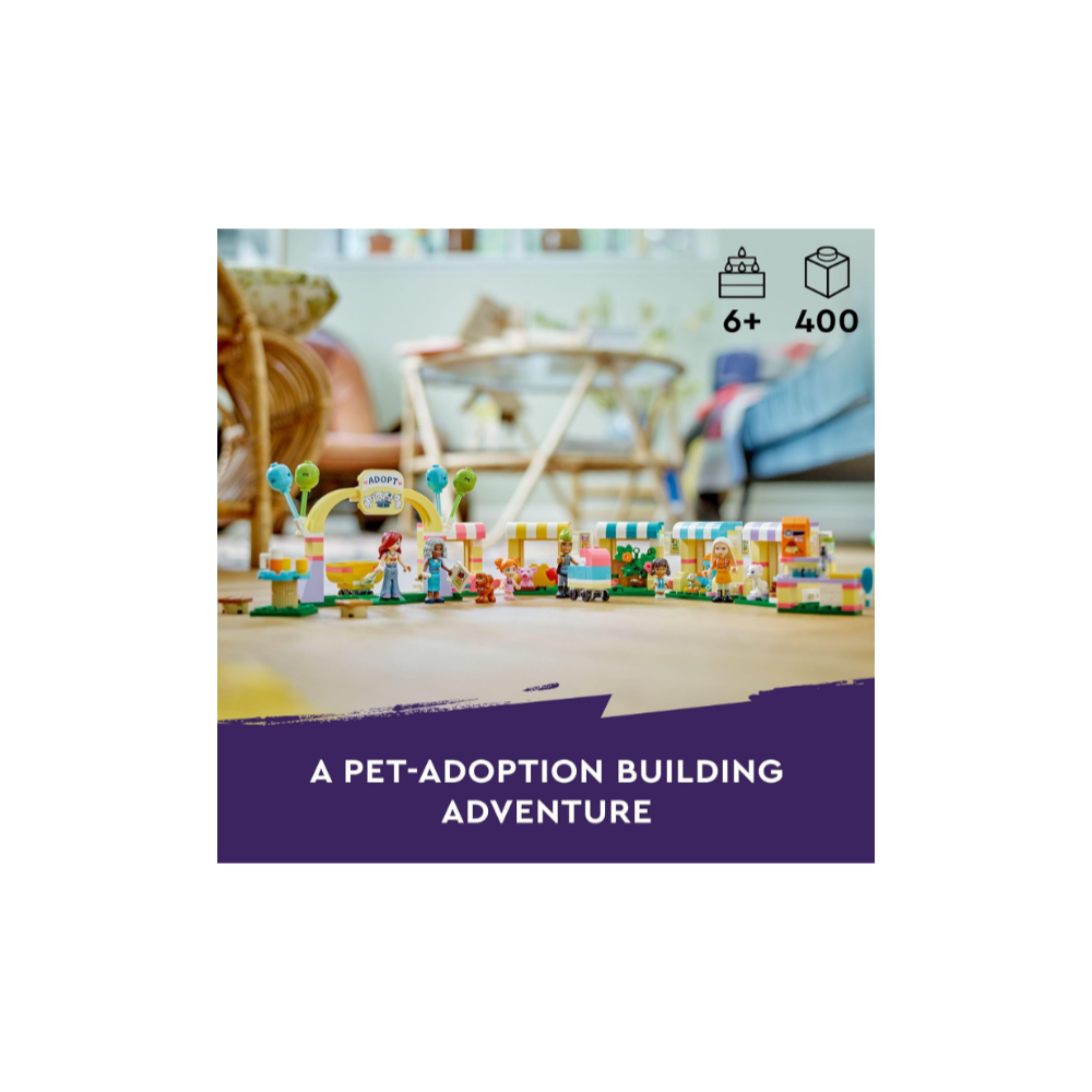 - Buildable pet adoption toy for animal lovers – The LEGO Friends Pet Adoption Day playset for kids, girls and boys aged 6 plus comes with 7 characters, 5 animal figures and lots of accessories
