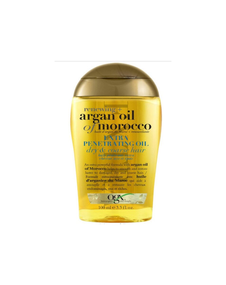 Revive your hair with the luxurious touch of OGX Renewing Argan Oil of Morocco Penetrating Oil. This lightweight, fast-absorbing formula is infused with cold-pressed Moroccan argan oil, known for its rich content of Vitamin E and antioxidants. Designed to strengthen, soften, and add shine, it penetrates deep into the hair shaft to restore moisture and protect against heat styling and environmental damage.