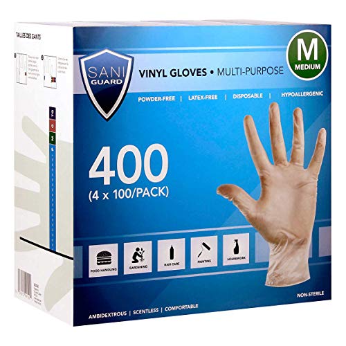 Sani Guard Vinyl Gloves Medium (4 Pack of 100), 400 Count
