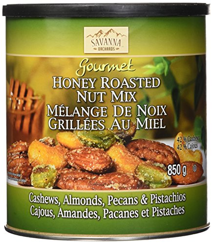 Savanna Orchard Gourmet Honey Roasted Nut Mix. Every can comes with cashews, almonds, pecans and pistachios / dry fruit mix