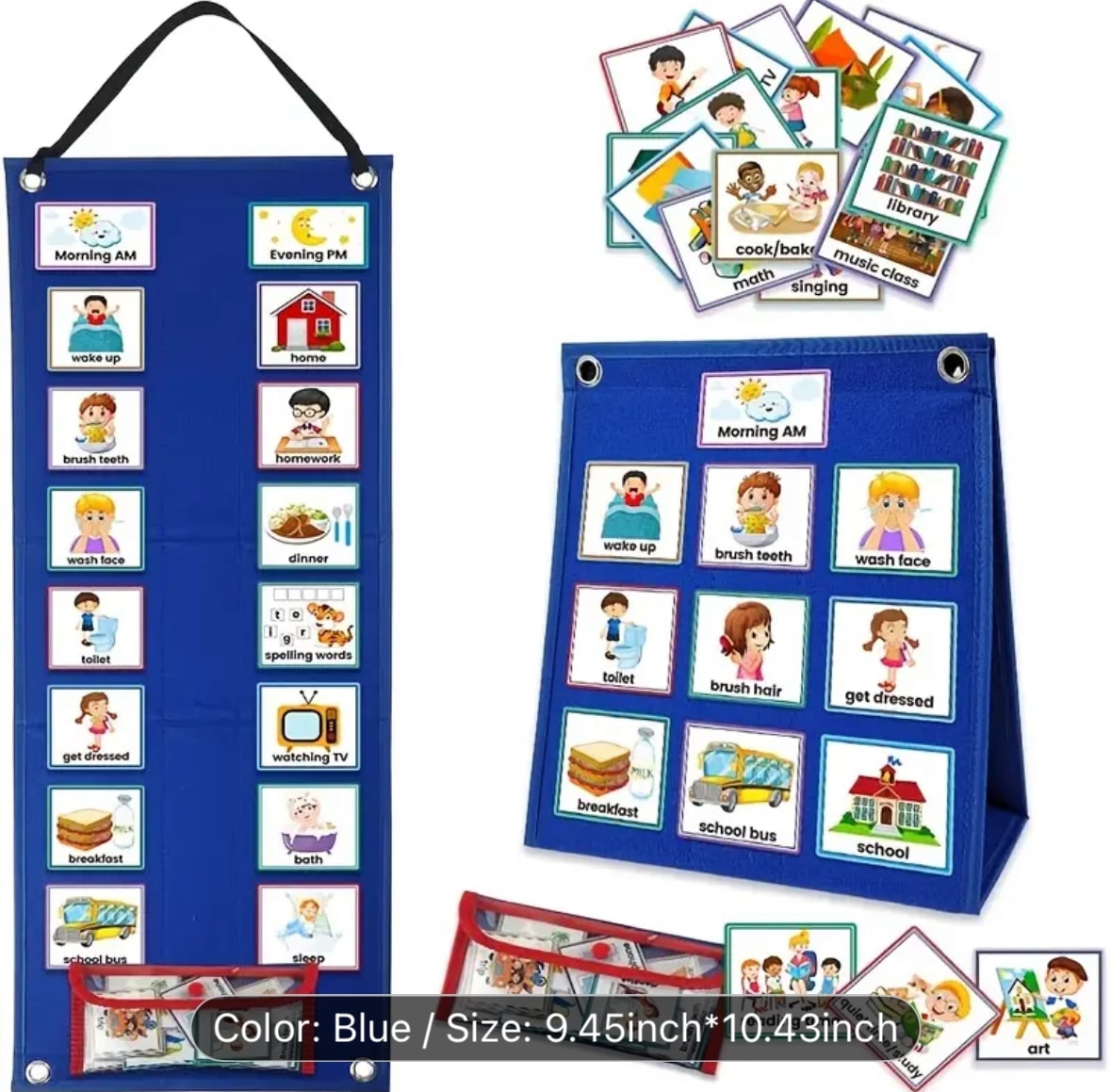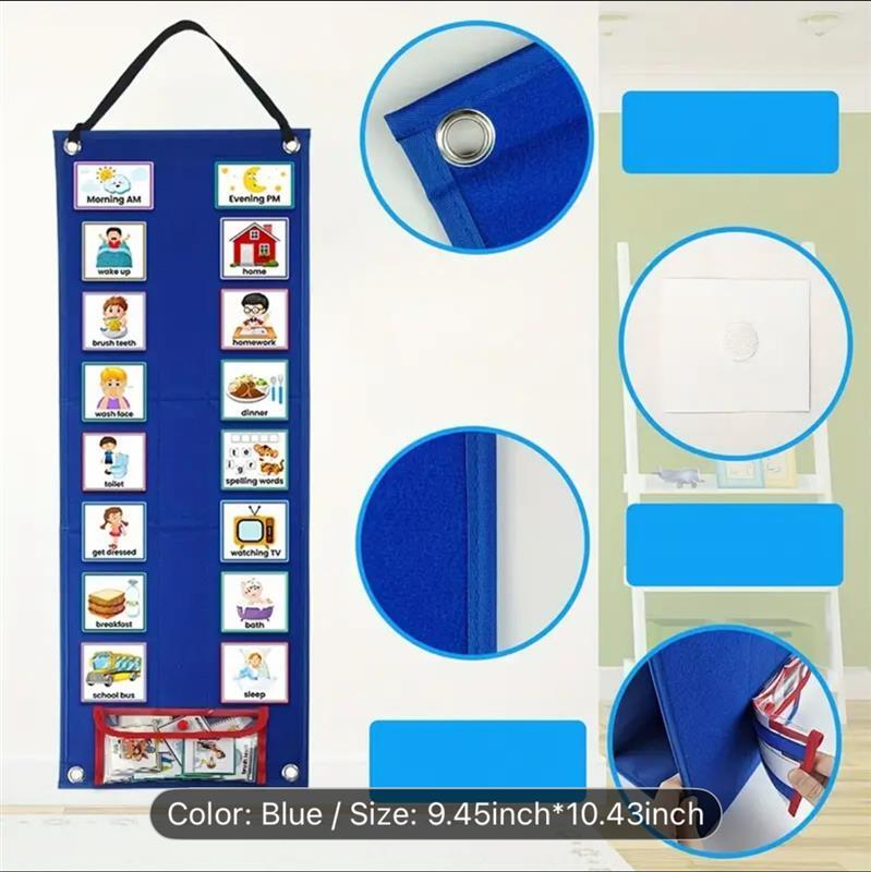 The flexible chart design allows it to hang on a wall or stand upright on a table, making it perfect for both home and classroom use. Children can easily understand their daily plan using simple pictures and icons, helping them feel more in control of their world. Use it as a communication aid, reward tracker, or learning resource — the possibilities are endless!
