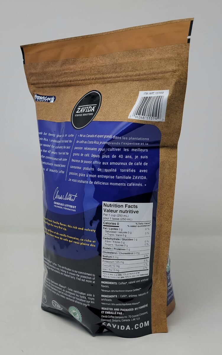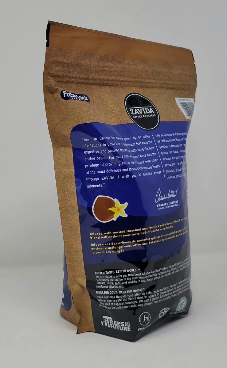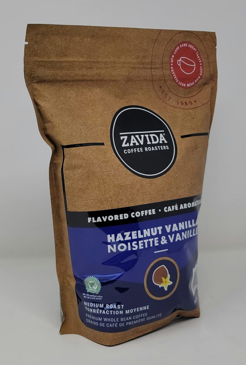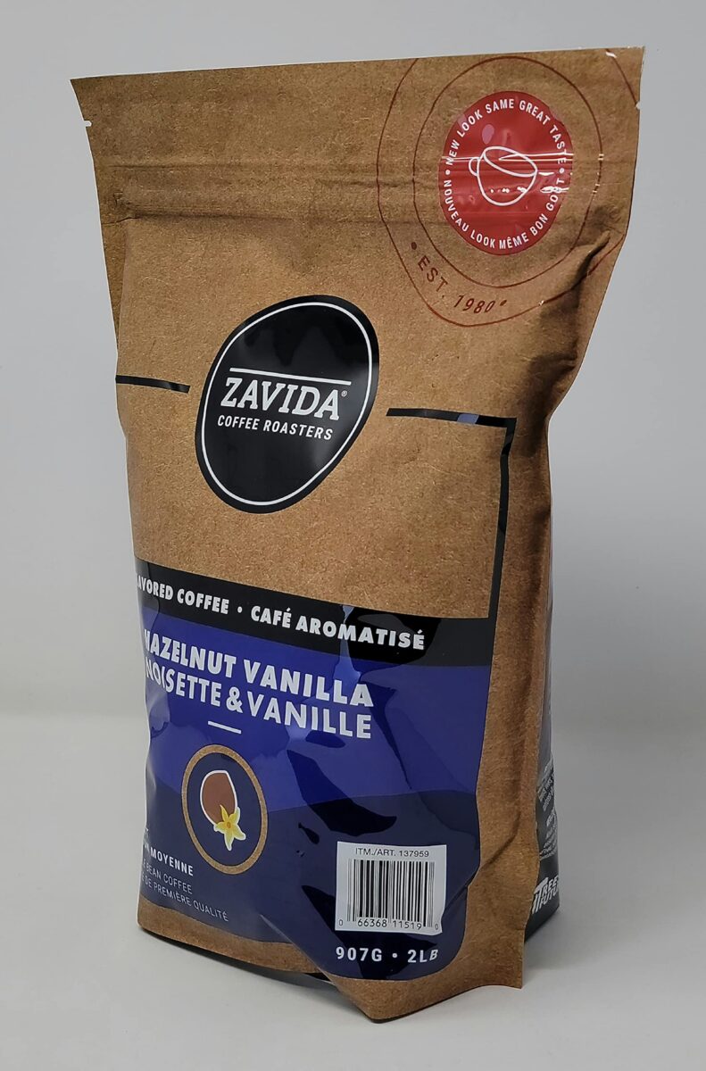 Zavida Hazelnut Vanilla Premium Whole Bean Flavoured / Flavored Coffee, Medium-Dark Roast, RFA 30%, Kosher, Halal, 100% Arabica, 2 Pound Bag
